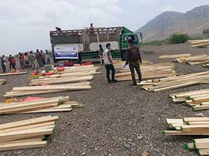 اختتمت منظمة اجيال بلا قات اليوم الاثنين انشطة اغاثة مئات الاسر النازحة في مديرية موزع بمحافظة تعز وتزويدها بمواد إيواءيه طارئة، وهو النشاط الذي تبنته المنظمة بشكل عاجل وبدأت طواقم المنظمة بتنفيذه بتاريخ 2 يونيو الحالي. وزودت اجيال بلا قات 700 اسرة نازحة في موزع بـ 700 حقيبة مأوي طارئ (مخيمات) بالإضافة الى 700 حقيبة مواد إيواءيه اخرى. وكانت اجيال بلا قات تبنت تدخلا عاجلا بعد حصولها على معلومات وتقارير من منظمة ابداع شباب عن وجود مئات الاسر النازحة بمديرية موزع محافظة تعز وتعيش منذ سنتين في العراء، كون المنطقة التي احتموا فيها للهروب من نيران الحرب نائية ولا تصلها الخدمات. وقالت منظمة اجيال بلا قات انها بمجرد سماعها عن الاوضاع العصبة للنازحين في موزع، قامت بتكليف طواقهما الميدانية في المخا للنزول وتقييم الاحتياج والبدء بتقديم مساعدات عاجلة وفورية. وبسبب الالغام المنتشر في مناطق واسعة من مديرية موزع وقرب المديرية من مناطق المعارك تجنبت المنظمات العاملة في الشأن الإنساني التدخل بالإضافة الى غياب دور الجهات الرسمية. وقالت منظمة اجيال بلا قات انها ستواصل السعي لتوفير الخدمات الضرورة والمنقذة للحياة مثل المياه والصحة والغداء للنازحين وتوفير الحماية للأسر وخاصة النساء والاطفال.